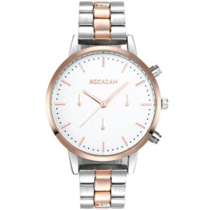 Micaiah Morcote Steel Rose Gold Ladies Watch – White Link Dial