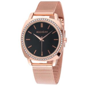 Micaiah Spiez Steel Rose Gold Ladies Watch – Black Iconic Dial